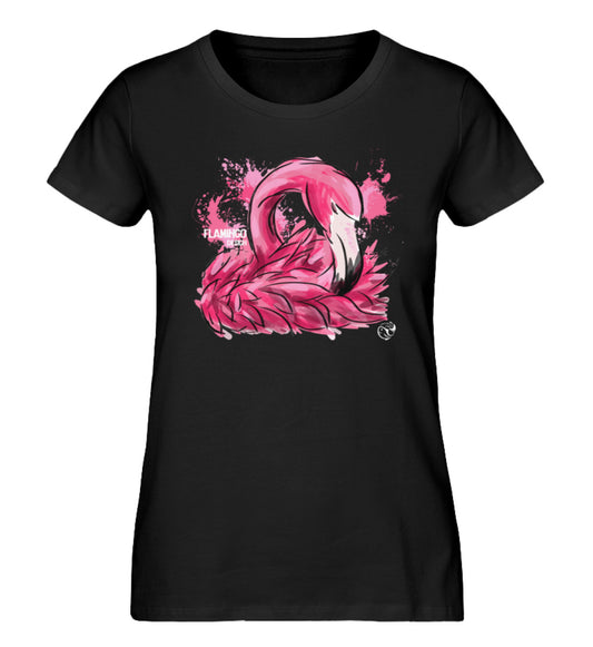 Flamingo - Damen Organic T-Shirt, Rundhals, in mehreren Farben, 100% Bio-Baumwolle