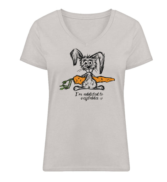 Vegan Rabbit | Hell - Premium Organic Damen T-Shirt, V-Neck, in mehreren Farben, 100% Bio-Baumwolle