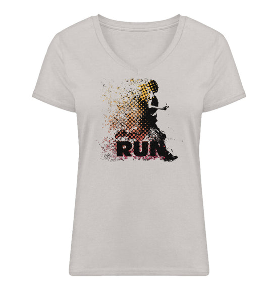 Run | Hell - Premium Organic Damen T-Shirt, V-Neck, in mehreren Farben, 100% Bio-Baumwolle