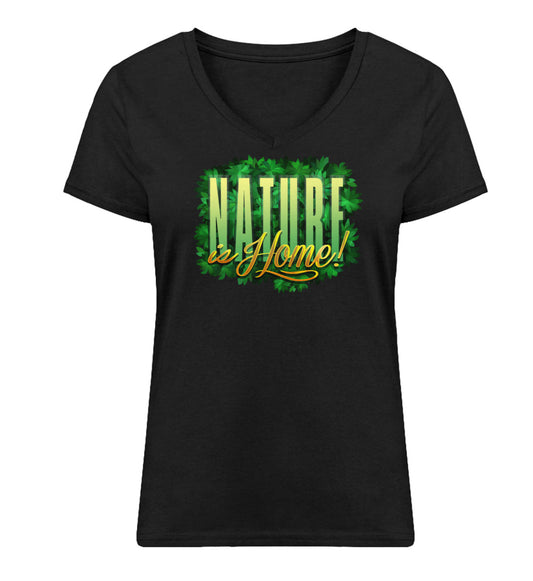 Nature is home - Premium Organic Damen T-Shirt, V-Neck, in mehreren Farben, 100% Bio-Baumwolle