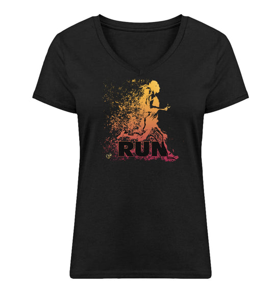 Run | Dark - Premium Organic Damen T-Shirt, V-Neck, in mehreren Farben, 100% Bio-Baumwolle